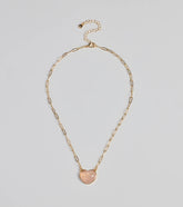 Pretty Aura Rose Quartz Heart Charm Necklace - PINKThe charm necklace features a trendy paperclip chain with a center heart-shaped rose quartz pendant to add a pretty aura. Style with rhinestone stud earrings.Fit & Features Paperclip chain Heart-shaped rose quartz pendant Back adjustable chain with lobster clasp closure