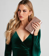 Rise To Elegance Beaded Clutch - GOLDRise to elegance with this metallic clutch perfect for your next dressy soiree! It features a foldover flap with beading and rhinestone embellishments, a snap-button closure, a detachable chain link strap, and a spacious lined interior with a pocket. Complete the look with heels.Fit...