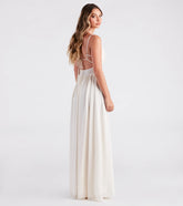 Blissful Beauty Chiffon Ruffle Trim V-Neck Maxi Dress - IVORYEnter every soiree looking blissfully beautiful in this chiffon maxi dress! Featuring a sleeveless V-neck with ruffle trim, adjustable spaghetti straps with a tie-back design, and a flattering babydoll-style silhouette, front slit, and maxi-length hem. Complete the look in lace-up stiletto heels and dainty...