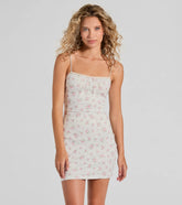 Effortless Cutie Bow Lace-Up Floral Mini Dress - IVORYLook effortlessly cute in this floral mini dress this summer! The stretchy knit fabric is accented with a dainty floral print for a charming look. This bodycon dress features adjustable spaghetti straps and a sleeveless square neckline adorned with a ribbon bow and delicate...