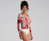 Must Be Love Mesh Floral Bodysuit - PINKIt's love at first sight! Celebrate Galentine's day in this mesh floral bodysuit featuring long sleeves, a plunge surplice neckline, and dual snap-button closure on a thong bottom. Complete the look in faux leather pants and strappy mules.Fit & Features Long sleeves Plunge surplice...