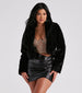 Layer on this luxe faux fur crop jacket for to give off a fabulous vibe! It features a lapel collar, an open front, long sleeves, and a fitted, cropped hem. The ultra-soft faux fur fabric features an all-over illusion stripe design to give the look of a trendy puffer design. Style with a faux leather mini skirt and heels.