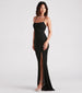 Start the party when you arrive in the Abbie formal glitter dress to shimmer and shine at school dances, red carpet events, and anniversary celebrations! She features a sleeveless square neck, spaghetti straps that lace up in the back, a mermaid silhouette, and a stunning high front slit and long hem. The formal dress is composed of a glitter knit stretchy fabric. Complete the look with a gorgeous hair clip for a flawless style!
