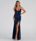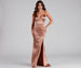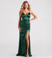 Get a stunning look in the gorgeous and chic Abigail mermaid dress! She features a sleeveless bodice, adjustable spaghetti straps that lead to a cross-back design, a V-neckline, and a sheer lace back panel with zipper closure. Her high waist leads to a curve-hugging mermaid silhouette with a floor-length skirt, front ruched detailing, and a thigh-high front slit. Pair the sleek satin dress with a rhinestone collar necklace and strappy heels.