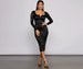 Make a dramatic entrance in our stunning Addison midi dress! She features long fitted sleeves, a wired notch front V neckline, a high waist, and a mid-length, curve-hugging silhouette with a sultry back slit. Pair this dress with a rhinestone choker necklace for a glam factor.