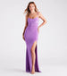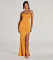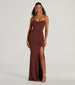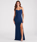 Steal the show in the chic Adera formal dress as you raise a toast to the newlyweds, graduates, or award recipients at a banquet! She stuns in a sleeveless sweetheart neckline with a chic cowl draping, a padded bust, spaghetti straps, and a curve-hugging mermaid silhouette with a sultry high front slit and long hem. The formal dress is composed of a slinky knit-lined fabric with a moderate stretch. Complete the look with an embellished box clutch and heels.