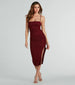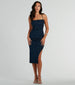 Discover a look that's chic and sparkly in the Adley formal glitter midi dress! Boasting a square neckline and spaghetti straps that lace up in the back, she's designed with a flattering form-hugging silhouette, a stylish side slit, and glitter knit fabric for a luxurious aesthetic. Complete the look in heels for a banquet or holiday party!