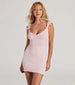 Keep up with the adorable coquette trend in this sleeveless mini dress! Adorned with charming shoulder straps and playful bows, this dress will hug your curves in all the right places and flatter your figure with its bodycon fit and mini-length hem. Complete the look with strappy sandals.