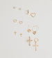 This adorable earrings set features six pairs of stud and hoop earrings in trendy designs with dainty charms and rhinestone detailing. Style with a layered necklace!