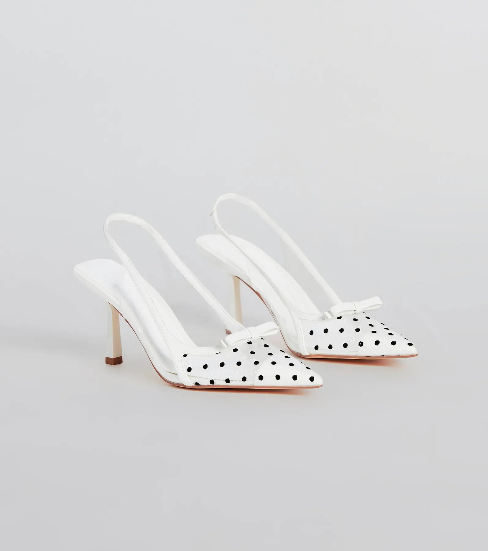 These adorably posh polka dot mesh slingback pumps are chic perfection! They feature a stiletto heel, a pointed-toe designed with a sheer mesh material with a chic polka dot pattern, the cutest mini bow accent, and a thin slingback strap for effortless on-and-off styling. Pair these pumps with a fit-and-flare dress and pearl earrings!