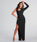 Want a gorgeous look for fancy events? The Aimee formal glitter long dress promises an effortlessly refined evening look. She features a fitted long sleeve, crew neckline, cleverly designed cutout shoulder detail, a slim silhouette, a high side slit, and a floor-length hem, crafted on shimmering glitter crepe fabric with a silky satin lining. Finish the look with earrings for a black tie gala or ball!