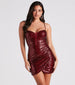 Showcase a gorgeous sheen in the shimmering Alaiya sequin mini dress! She features a sleeveless sweetheart neckline with padded cups, a sheer mesh insert at the center of the bust, adjustable spaghetti straps for a customized fit, a faux wrap-front skirt, and a short, curve-hugging, bodycon silhouette. The lined knit fabric features all-over sequin embroidery to give the dress its luxe shine. Complete the look with strappy stilettos.