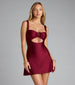 Giving just enough drama to make ‘em stare. With a sleek cutout bodice and a sweetheart neckline that ties it all together, this A-line mini dress is made for date nights and parties.