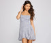 Keep it lovely and gorge with a mini dress that shows off your sweet side! The dress features a ditsy floral print, a sleeveless square neckline, spaghetti straps, a lower back keyhole with tie-back straps, and a skater silhouette with a ruffled hem. Complete look with chunky sneakers.