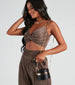 Can't you think of all the ways you'd use this crossbody bag? It features a sleek and stylish circular silhouette, a detachable chain-link strap, top handle, gold metal hardware, a front toggle closure, and quilted faux leather material. Complete the look in a sultry matching set.