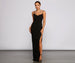 Showcase a stunning sparkly vibe in the gorgeous Allison formal dress! She features a sleeveless bodice, adjustable spaghetti straps, a trendy cowl neckline, and a floor-length skirt with a slim fit and a thigh-high side slit. The knit fabric is embellished with all-over heat stones for an elevated and glamorous look. Complete your outfit with rhinestone statement earrings and a chic clutch.