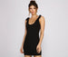 Create an alluring and chic everyday look with this must-have mini dress! It features a sleeveless bodice, a scoop neck and back, tie shoulder straps, and a mini-length, curve-hugging silhouette. Complete your outfit with heeled mules and a trendy shoulder bag.