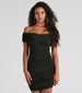 Create an alluring and chic look in this gorgeous mini dress. It features an off-the-shoulder neckline with a cross-over design, short fitted sleeves, and a mini-length, curve-hugging silhouette. The smooth knit fabric provides plenty of stretch for comfortable wear. Complete the outfit with statement earrings and a sleek clutch.