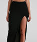 Showcase your alluring beauty in this on-trend midi skirt. It features a flattering high-rise waist, a midi-length, curve-hugging silhouette, and a chic thigh-high side slit. Style with the matching crop top and heels for a girl's night out.