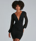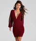 Step out in style in this long-sleeve mini dress with a plunging V-neckline. Embrace the sophisticated elegance of this chiffon long-sleeve bodycon mini dress with side ruching. The gathering details on the sides of this mini dress enhance the curves of your hourglass shape for an irresistibly stunning look. Elevate this dress with platform heels and a sparkly clutch, perfect for date night or enjoying a night out with your besties.