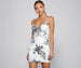 Bring the sparkle with a formal dress that puts you at the center of it all! Amoura features a sleeveless V-neckline, bungee spaghetti straps, a foiled floral print, dazzling sequins throughout, and a mini-length silhouette. The dress is composed of a lined mesh fabric that offers a form hugging fit with minimal stretch. Complete look with rhinestone heels.