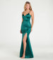 Occasions are made easy in the Amy satin formal dress designed with a mermaid silhouette that flaunts your curves while the high front slit offers effortless movement.