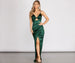 You'll absolutely stun in the silky satin fabric and with the gorgeous sheen of the Andie formal dress! She features a sleeveless plunging V-neckline with a padded bust, spaghetti straps, an alluring knot-front design with a small keyhole cutout for a sultry vibe, and a floor-length curve-hugging wrap skirt with a front slit. Accessorize the look with simple and bright rhinestone earrings for a statement finish.