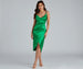 The chic Angelina sleeveless midi dress is the perf option to look sleek and stylish for cocktail parties or semi-formal weddings. She features an on-trend cowl neckline, spaghetti straps, a high waist seam to elongate your silhouette, a wrap-front skirt with ruched detailing, and a mid-length, form-hugging fit. Complete the look with strappy stilettos.