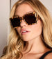 These trendy sunglasses feature oversized square frames with a fierce leopard pattern. Perfect for everyday styling.