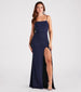 Simple and chic, the Anna formal mermaid dress is perfect for bridesmaids or if you're going to be a guest at an upcoming wedding! She features a sleeveless cowl neckline, adjustable spaghetti straps for a customized fit, a flattering high waist seam, and a floor-length fitted mermaid silhouette with a stylish thigh-high front slit. The crepe fabric offers a moderate stretch. Complete the look in this formal long dress with strappy stiletto heels.