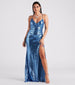 Light up the night with a gorgeous dress that will bring the glamour! The Ariella formal dress will level up your look for prom or any fancy affair. She features a sleeveless V-neckline with a wrap-front design, a built-in padded bust, spaghetti straps, an alluring open back with cross-back, lace-up straps, a fitted bodice, a hip-hugging fit, a floor-sweeping hem with a wrap-front design creating a chic thigh-high side slit, and a mermaid silhouette. The all-over sequin embroidery will draw all eyes to you! Style with rhinestone fringe earrings.