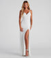 Showcase gorgeous radiance when you enter the room in the floor-sweeping Ariella formal dress. She features a sleeveless sweetheart neckline, dual adjustable spaghetti straps for a customized fit, a chic strappy lace-up back design, all-over heat stone embellishment for that glamorous sparkle, and a fitted mermaid silhouette with a sultry thigh-high side slit to show some leg. Complete the look with sleek stilettos.