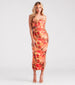 You'll be the artsy muse in this abstract print mesh midi dress for gallery openings or an evening downtown! It features a strapless cowl neckline, flattering side ruched seams that accentuate your curves, a bodycon silhouette, and a side slit accent. Complete the look in clear strap heels for a seamless style!