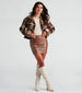 This fall, get back to basics with this faux leather mini skirt to build the perfect seasonal wardrobe! It features a sleek design with a high-rise elastic waist and a bodycon fit. Complete the look in an oversized blazer, bodysuit, and boots.