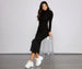 We're in the mood for basics! Slay in this dress that keeps it effortlessly chic. The dress features a trendy turtle neck, long sleeves, and a maxi length silhouette with a high center back slit. The dress is composed of a ribbed knit fabric that offers a form-hugging fit. Complete look with sneakers to nail those low-key vibes.