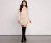 Amp up your basic mini dress with a trendy side slit! This staple piece dress features a mock neck, long sleeves, and a side slit. The dress is composed of a lined ribbed knit fabric that offers a form hugging fit with a moderate stretch. Complete look with ankle booties.