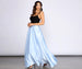 A contrasting bodice and skirt make our beautiful Bayley noticeably unique. Her satin skirt flares into a voluminous princess ball gown, making her a twirl-worthy choice! Put your hair into a wispy, romantic up-do and don some rhinestone earrings for an elegant look!