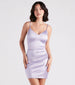 You'll be a total sensation in this satin mini dress at the club! The short dress features a sleeveless V-neck, spaghetti straps, and a side pleated seam that runs across the bodycon silhouette. Style the satin mini dress with dainty earrings and block heels to complete the look!