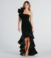 The Beatrice formal high-low dress gives a sophisticated, elegant look perfect for black tie galas and holiday parties! She features a one-shoulder neckline and layered ruffle trim, a classic bodycon silhouette, and delicately cascades to an eye-catching high-low hem with bonded ruffle trim. Make a statement at your next event with this stunning formal dress crafted from soft velvet fabric that exudes luxe allure! Complete the look in strappy stiletto heels.