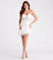 When you're craving some glam for the bachelorette or wedding reception, the Bella crepe party dress delivers with all-over faux pearl embellishments and more! She features a sleeveless sweetheart neckline with non-slip grip lining, adjustable spaghetti straps, a built-in padded and underwire bust, a sheer mesh bodice with flexible boning, and a short bodycon silhouette with a fab feather trim along her hem. The mini dress is composed of a crepe fabric that gives a chic-polished look and has a stretchy knit lining. Complete the look with rhinestone earrings and block heels.