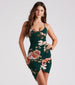 You'll bloom with beauty in this effortlessly stunning floral mini dress. It features a sleeveless V-neckline, spaghetti straps that lead to an open back with a subtle strappy design, a faux wrap-front silhouette creating an asymmetric mini-length hem, and a curve-hugging fit. The stretchy knit fabric showcases a gorgeous bold floral print. Style with stilettos for a spring date night.