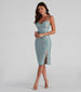 Let the romance bloom on date night in this alluring and chic floral lace midi dress. It features a sleeveless V-neckline, adjustable spaghetti straps, a bust seam outline with dainty scalloped lace, a midi-length hem with a thigh-high side slit, and a fitted A-line silhouette. Style this mid-length dress with duster earrings and clear heels.