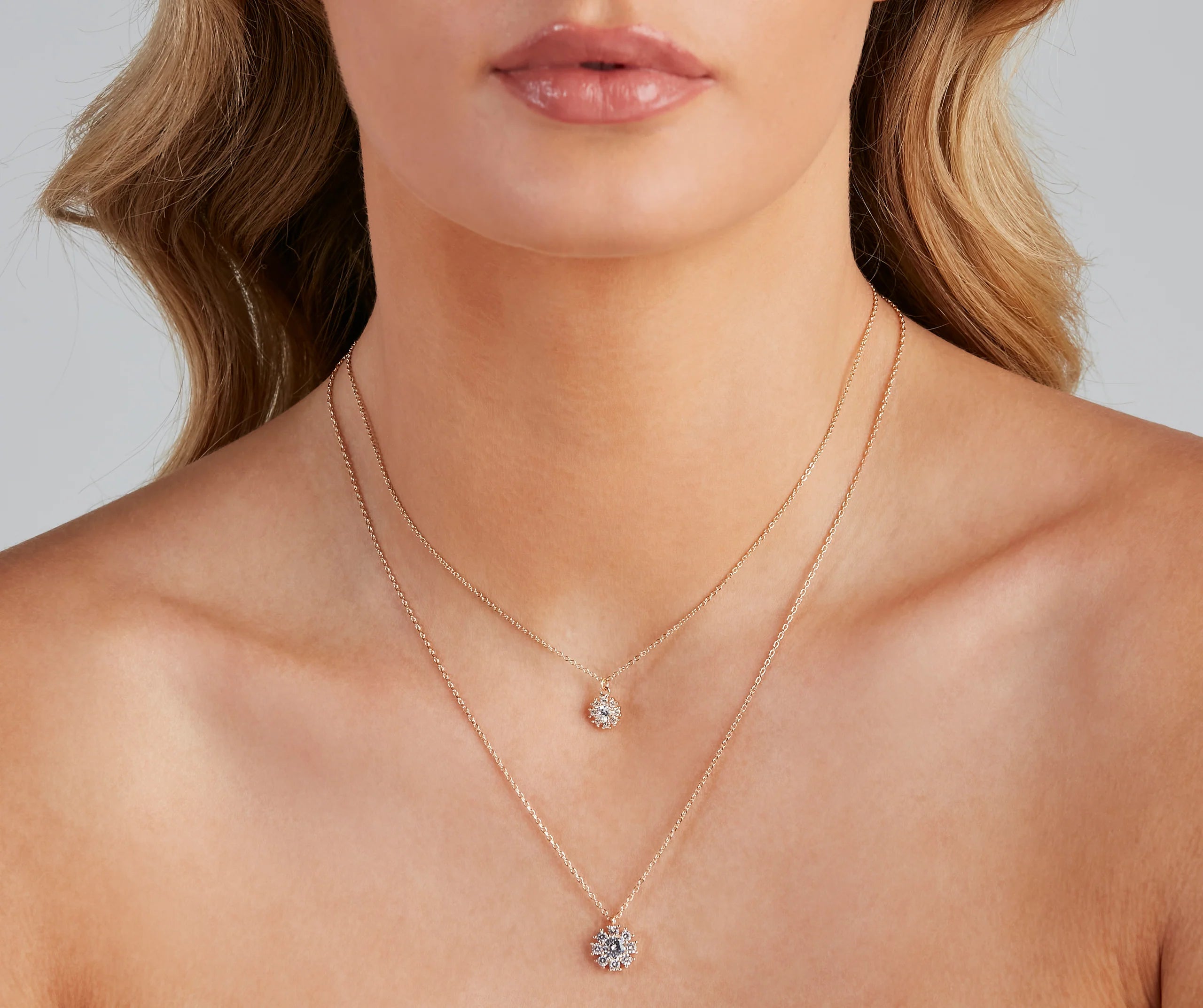 Embrace true boho chicness in this layered necklace featuring cubic zirconia coin charms on a delicate chain-link with lobster clasp closure. Style in an off-the-shoulder blouse.