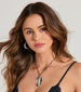 Level up your summer 'fits with this sleek charm necklace that gives off boho glam vibes. It features a trendy braided cord strap design accented with a hammered metal oval cutout charm. Style with hoop earrings.