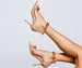Make bold moves in these chic and trendy stiletto heels. They feature an open square-shaped toe, a toe strap with a thick chain-link trim, a chain-link ankle strap, and a sleek stiletto heel. Style these shoes with straight-leg jeans and a cute crop top.
