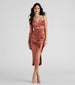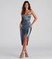 Keep it sultry and stunning in the gorgeous Bre satin midi dress! She features a sleeveless cowl neckline, spaghetti straps, ruched detailing down the center, a mid-length, curve-hugging silhouette, and a front slit to showcase some leg. The smooth satin-knit fabric offers a moderate stretch. Style this dress with rhinestone earrings and a sleek clutch.