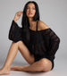 Embrace effortless style with this crochet sweater perfect for styling over a swimsuit or tank top. This sweater offers a blend of comfort and allure with relaxed long sleeves, a flirty one-shoulder neckline, and a cropped hem.