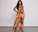 Bring on brighter vibes in this maxi dress that brings a burst of color this season. The maxi dress features a plunging v-neckline, sexy waist cutout to show off a hint of skin, a lace-up back, and a high side slit. Complete your look with fab cork wedges and sunnies for those ultimate summer vibes.