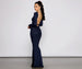 Illuminate the night in the formal Brin dress that dazzles from all your best angles. The dress features V-neckline, long sleeves, and a bold open-back design with a lower back bar strap accent. She is composed of a glitter knit fabric that offers a form-hugging fit. Complete your look with rhinestone earrings, a sleek clutch, and glitter heels.