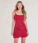 Bring the romance in this flirty mesh mini dress embellished with tonal rhinestones in a chic rose pattern. It features a sleeveless square neckline, adjustable spaghetti strap for a customized fit, an open back with a back strap accent, and a short A-line silhouette.